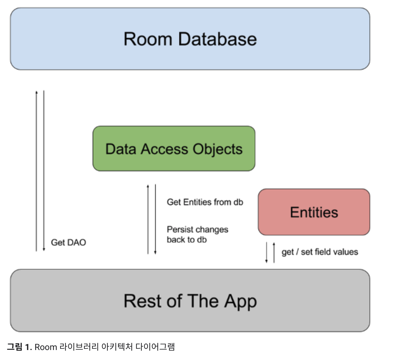 - Room 라이브러리 사용하여 앱에 데이터를 저장하려고 할때, Data Access Object와 interaction해야한다